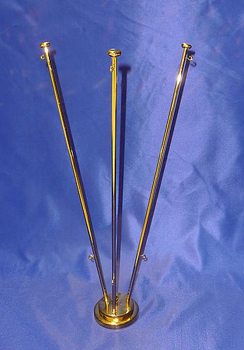 Tischflaggenständer, 3-fach, ca. 42 cm, goldfarbenes Metall, mit 2 Haken an der Stange. Alle Preise verstehen sich pro Stück und ab Werk, inkl. 19 % Mwst.